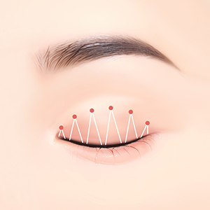 눈꺼풀 안과 밖을 실로 연결합니다.