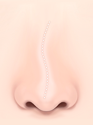 휜코는 콧등에서 코끝까지 이어지는 라인이 휘어져 있는 상태로 콧등이 굽어 있거나 한쪽으로 삐뚤어진 코를 말합니다.