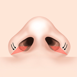 비절개 콧볼축소가 효과가 떨어지는 부분, 절개 콧볼축소가 흉터가 눈에 띄는 부분을 보완한 최적의 방법으로 겉으로 티가 나지 않게끔 콧구멍 안에서 절개 콧볼축소가 이루어집니다.