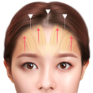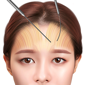이상적인 눈썹의 높이와 이마 모양에 맞게 처진 근육과 피부를 당겨 흡수성 엔도타인으로 골막에 고정합니다.