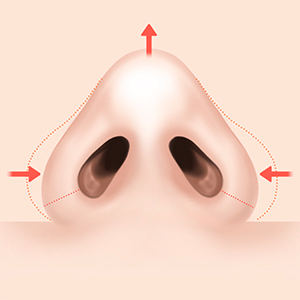 얼굴의 균형을 깨뜨리는 넓은 콧구멍/콧볼을 비율에 맞게 줄여 슬림하고 세련된 코 라인을 만들 수 있습니다.