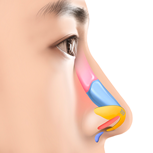 비중격연골 등 자가조직을 연결해 코의 길이를 연장하고, 콧날개 연골을 분리한 후 이동시켜 짧은코를 교정합니다.