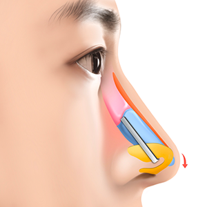 코의 기둥을 절제하지 않고 안쪽을 통해 보형물을 삽입하여 코끝을 교정할 수 있습니다.